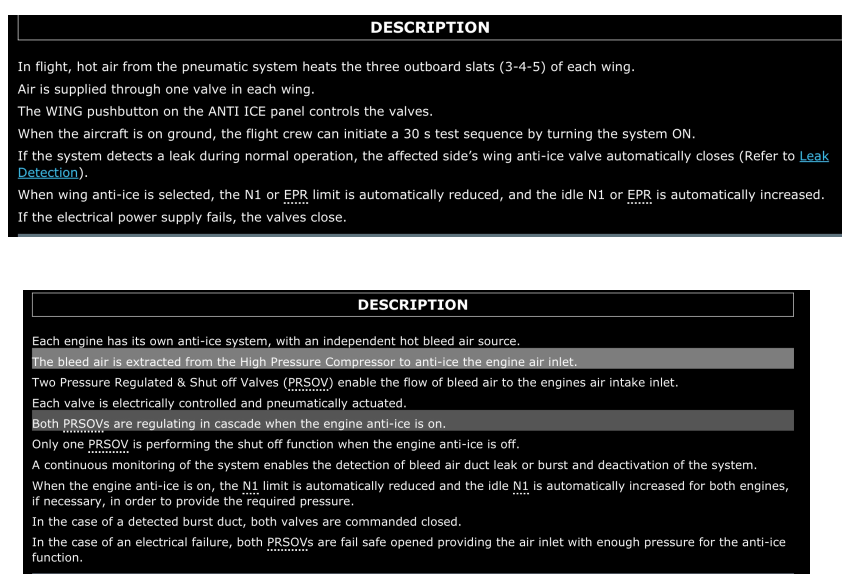 ENG ANTI ICE is selected ON and/or engine flameout is detected in flight and/or EIU