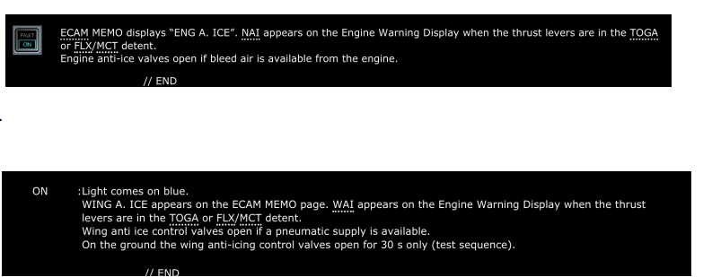 WAI APPEARS ON EWD WHEN THRUST LEVER IN TOGA OR FLX/MCT DETENT