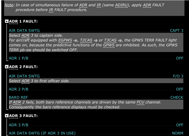 FCOM PRO ABN NAV NAV RA1/2 FAULT